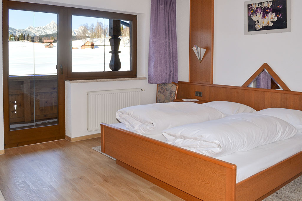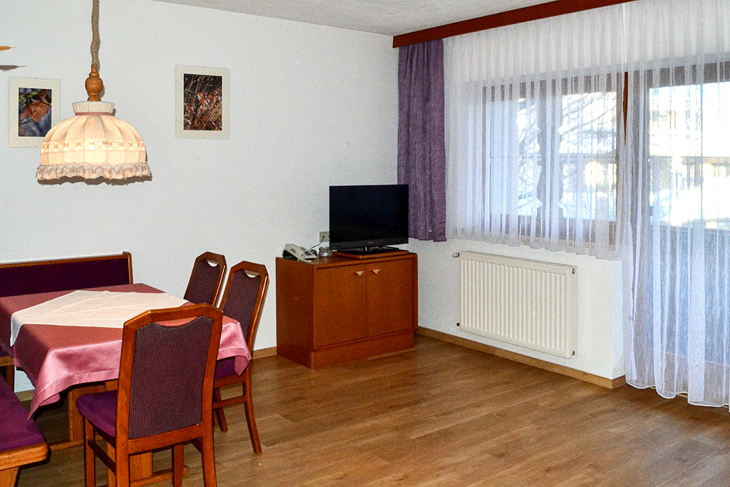 Geräumige und gemütlich eingerichtete Ferienwohnung mit herrlichem Blick auf das umliegende Bergpanorama. Alle Zimmer können durch Türen geschlossen werden.